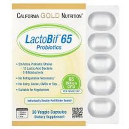California Gold Nutrition LactoBif® 65 Probiotics 65 Billion CFU, 30-California Gold Nutrition Probióticos LactoBif® 65 65 mil millones de UFC, 30