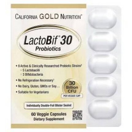 California Gold Nutrition LactoBif® 30 Probiotics 30 Billion CFU, 60-California Gold Nutrition Probióticos LactoBif® 30 30 mil millones de UFC, 60