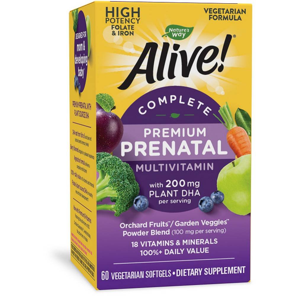 NATURES WAY ALIVE COMPLETE PRENATAL — комплексная ежедневная пренатальная добавка, содержащая витамины, минералы и питательные вещества для поддержки здоровья матери и развития плода. Помогает поддерживать энергию, предотвращать дефицит нутриентов и способствовать общему благополучию во время беременности.