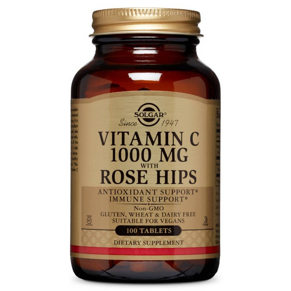 Solgar Vitamin C, 1000 mg vitamin C, rose hips, antioxidant, immune support, skin health.