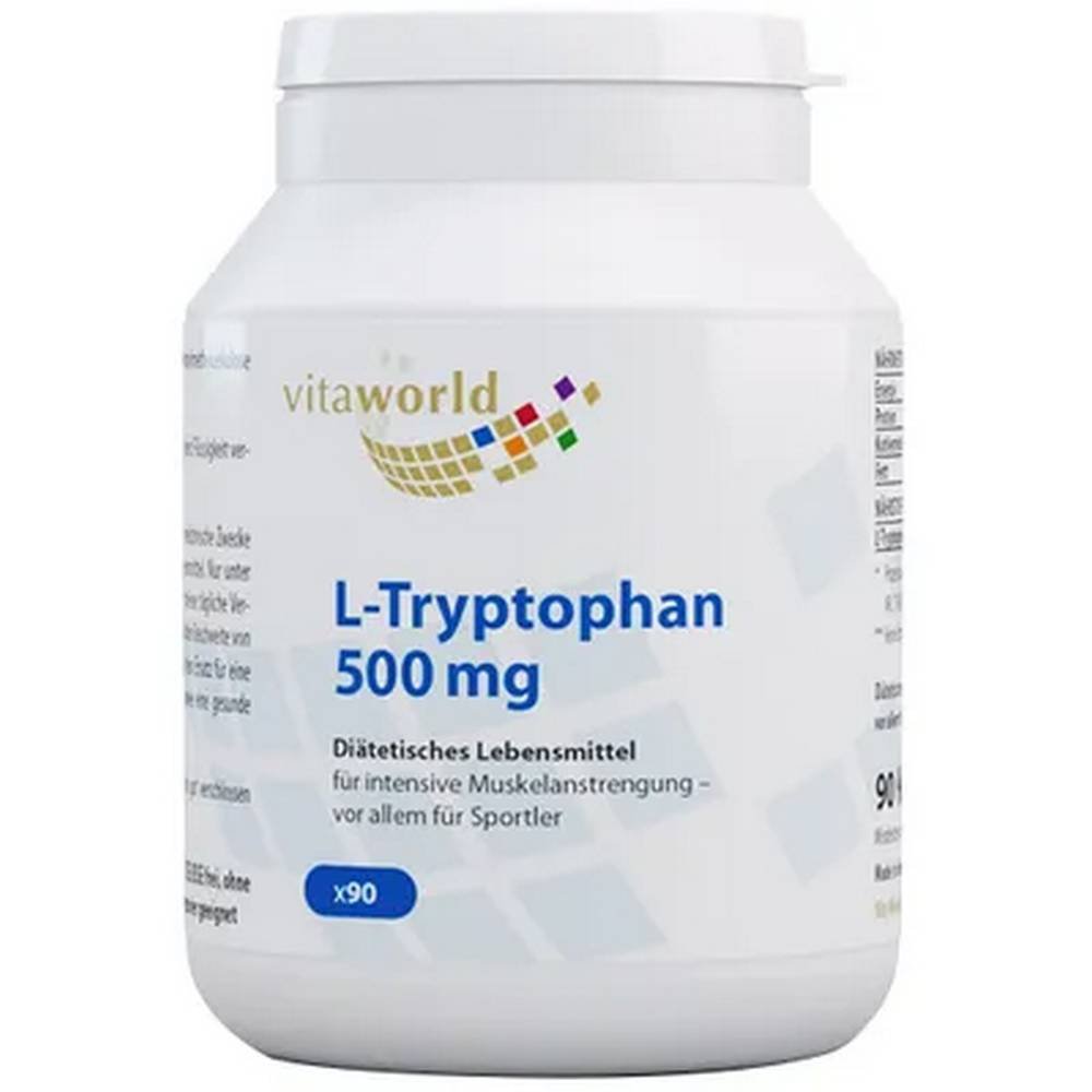 Package Contents: 90 capsules of Vita World L-Tryptophan 500 mg.