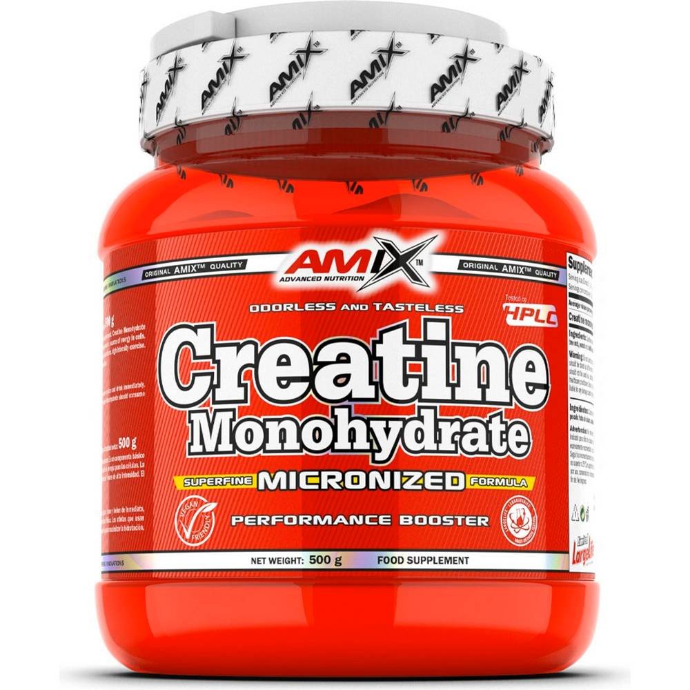 Each 500g pack contains micronized AMIX Creatine Monohydrate powder, portioned for effective daily use to support strength, performance, and recovery.