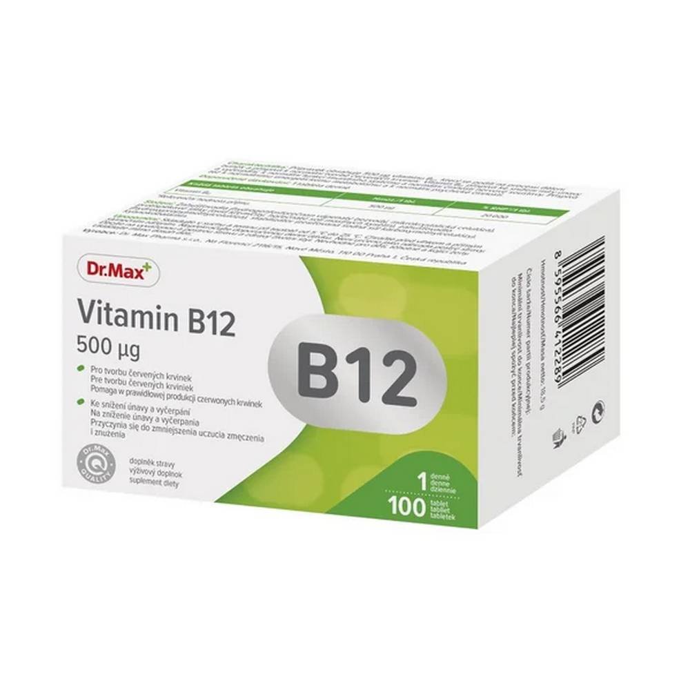 Each package of Dr. Max Vitamin B12,100 contains 100 tablets, providing a long-term supply of essential vitamin B12 for maintaining energy, metabolism, and overall health.