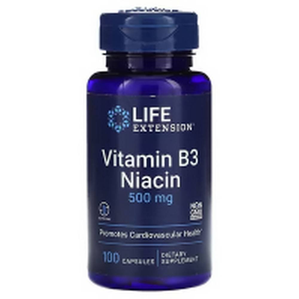 Life Extension, Vitamin B3, Niacin, 500 mg, heart health, cholesterol support, energy production, circulation, non-GMO, gluten-free.