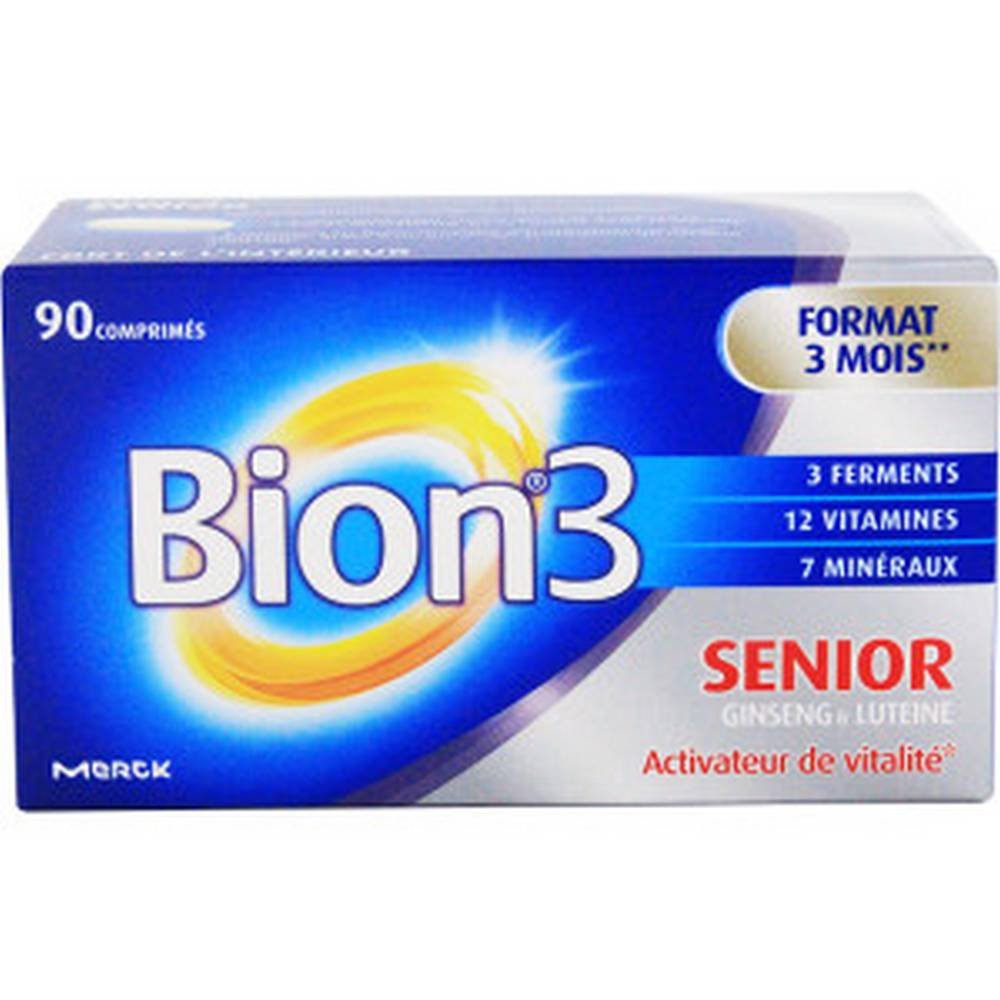 Bion3 Sénior, complément Merck, soutien immunitaire, vitamines pour seniors, comprimés probiotiques, santé après 50 ans, complément vitalité.