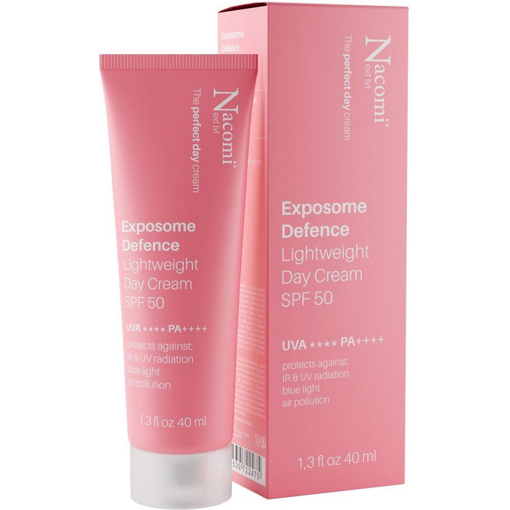 Nacomi Next Level Exposome Defence is a lightweight daily face cream with SPF 50, designed to protect skin from UV rays, infrared, blue light, and environmental stressors. Its fast-absorbing formula hydrates while strengthening the skin’s barrier and preventing premature aging. :contentReference[oaicite:0]{index=0}